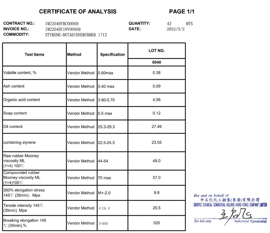 So với SBR 1502 không dầu, SBR 1712 thể hiện ưu thế rõ rệt về khả năng trộn, độ mềm và hiệu suất sản xuất. Khi kết hợp cùng các phụ gia như carbon black N330 hoặc RPO 140 đặc trưng, chất lượng sản phẩm càng được nâng cao.
